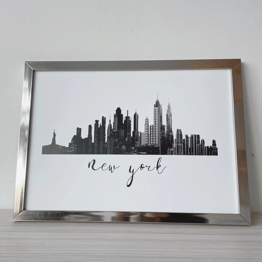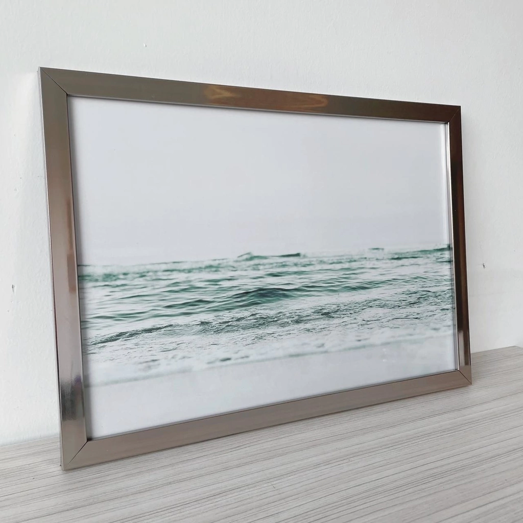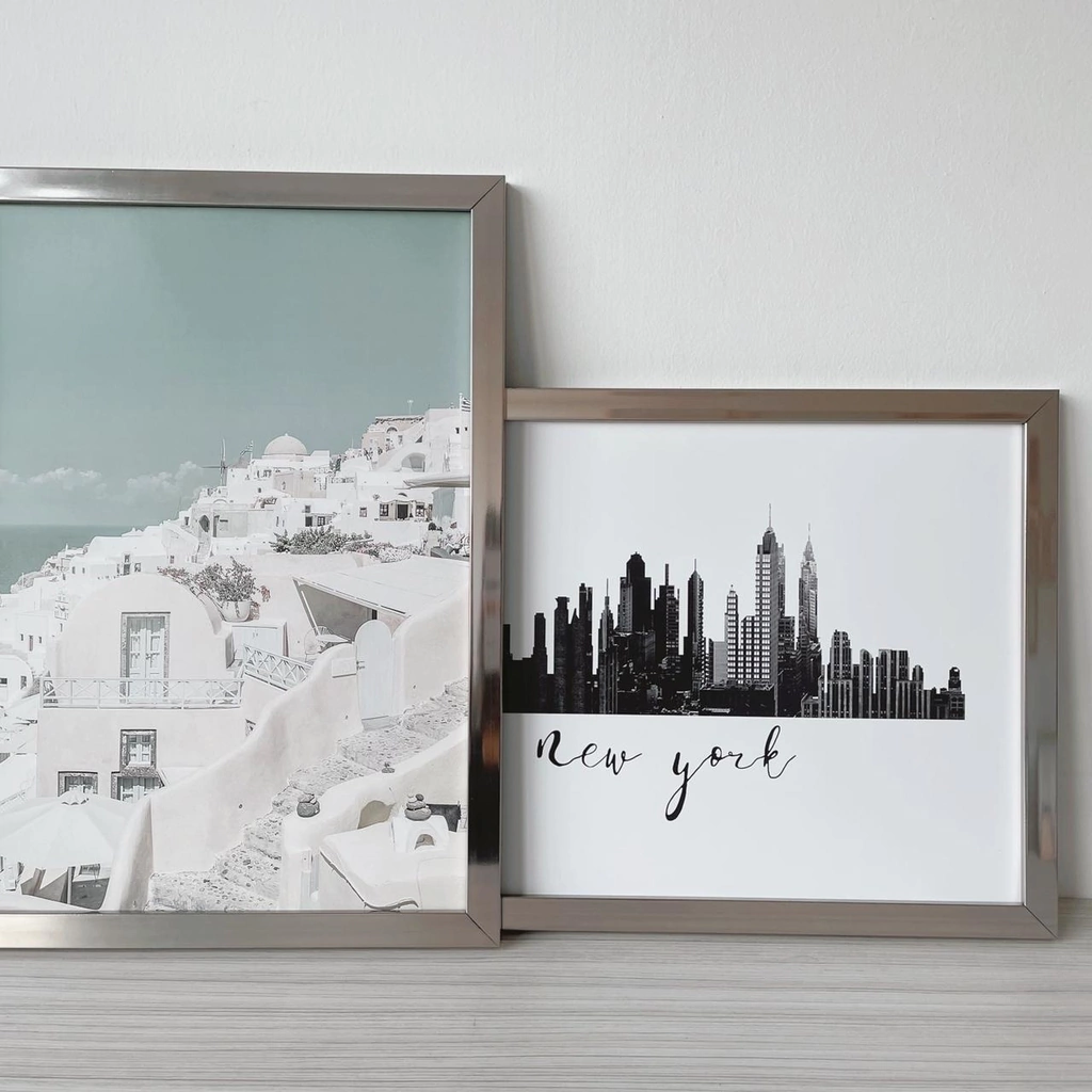 INCLUYE: LÁMINA IMPRESA EN PAPEL DE ALTO GRAMAJE, MARCO CROMADO TIPO ESPEJADO DE 2CM DE FRENTE Y 1,8CM DE PROFUNDIAD, VIDRIO DE 2MM Y ACCESORIOS PARA COLGAR.