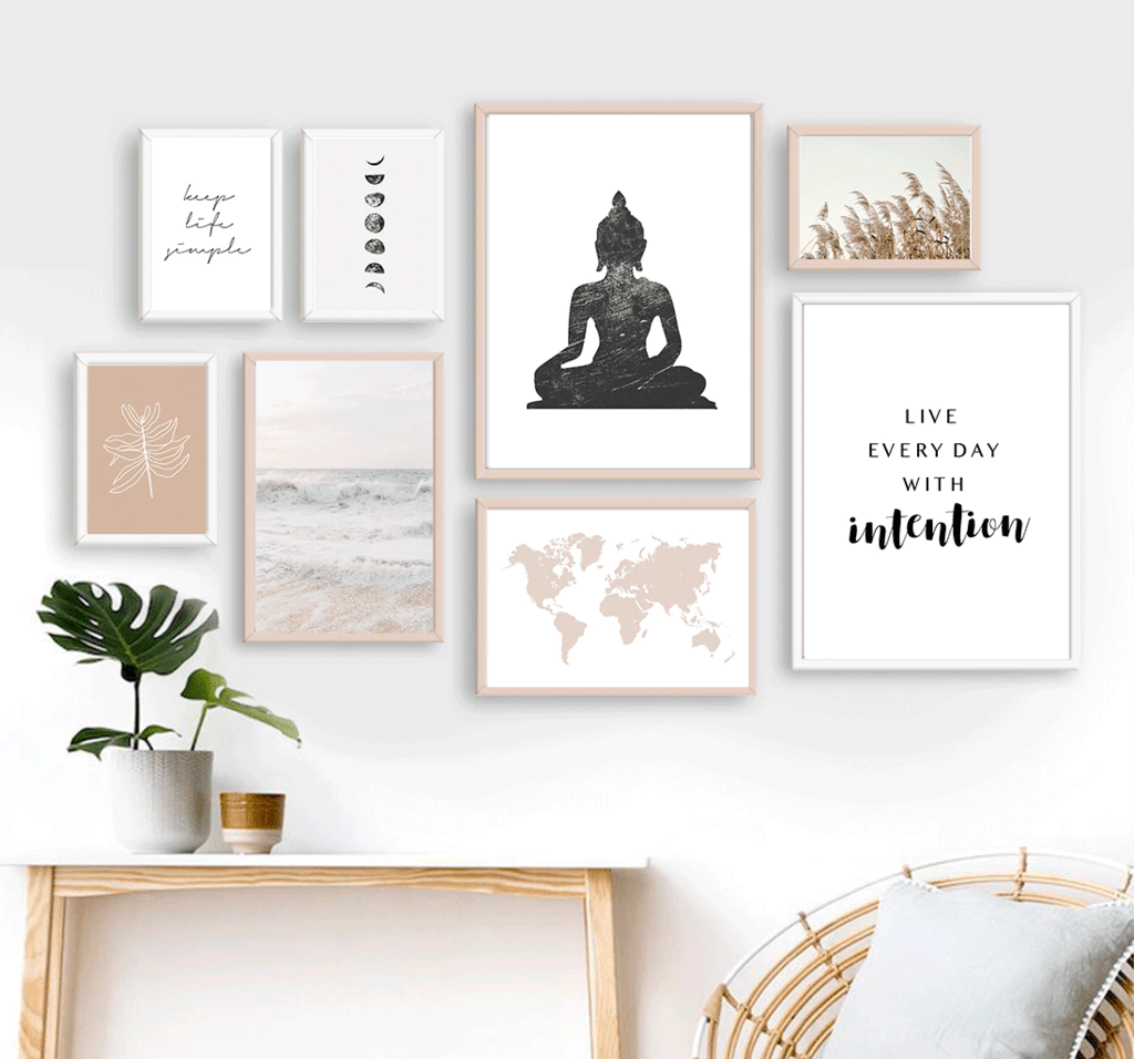 ESTE SET INCLUYE: LÁMINA IMPRESA EN PAPEL DE ALTO GRAMAJE, MARCO TIPO CAJÓN DE MADERA MARUPÁ, VIDRIO DE 2MM Y ACCESORIOS PARA COLGAR.